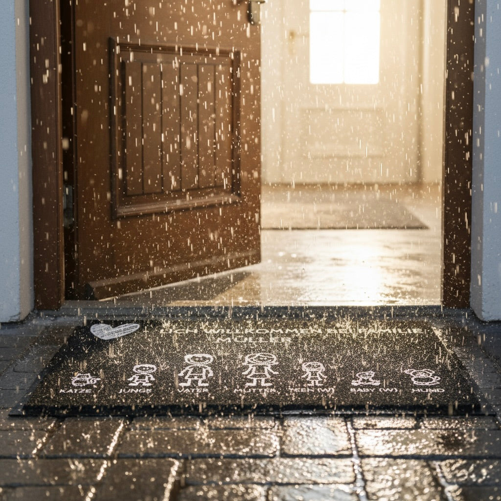 Kennst du das? Gäste kommen rein und deine Tür sieht aus wie jede andere. Unsere personalisierten Fußmatten bringen sofort Charakter: Dein Name, Deine Familie — alles wetterfest und rutschfest. In 2 Minuten personalisiert, in 48 Stunden bei dir. Perfekt als Einzugs- oder Einweihungsgeschenk, das wirklich bleibt.