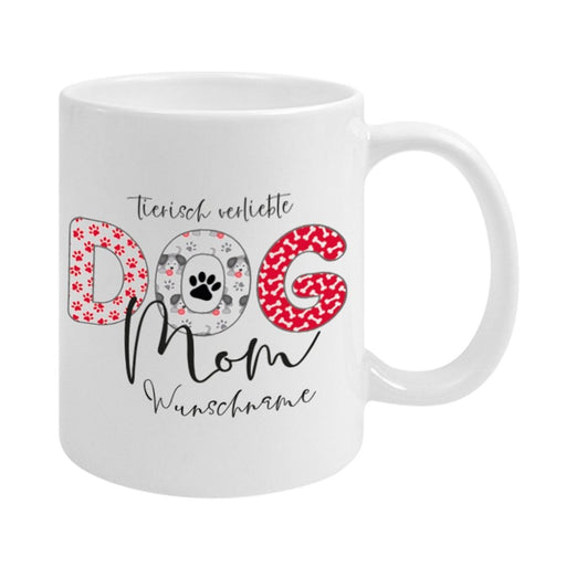 Emaille Becher - dog mom mit Wunschname Farbe -