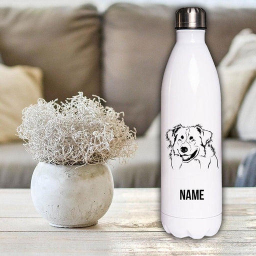 Personalisierte Thermosflasche mit handillustrierter Hunderasse & Wunschname -