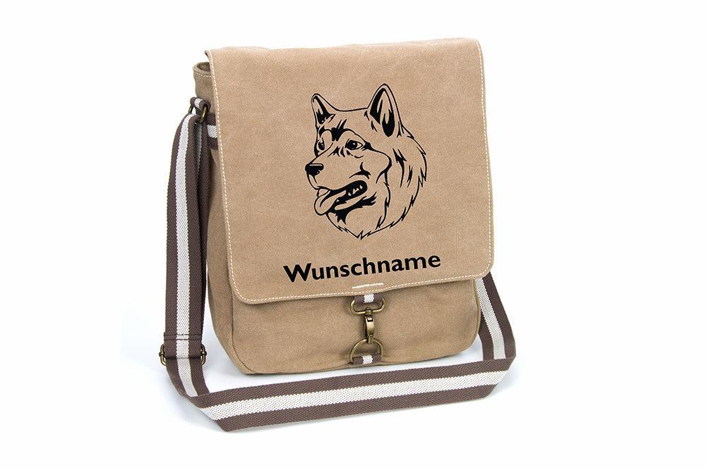 Alaskan Malamute - Canvas Schultertasche Messenger mit Namen -