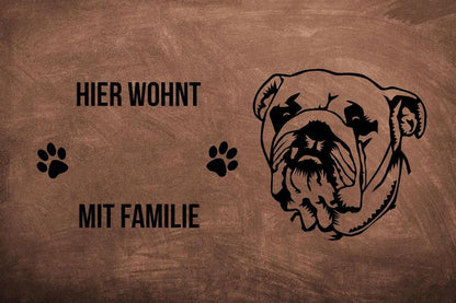 Diese hochwertige Fußmatte mit American Bulldog-Motiv ist ideal für alle, die ihre Liebe zu dieser beeindruckenden Hunderasse schon an der Haustür zeigen möchten. Personalisiert mit deinem Wunschnamen oder Text – das perfekte Geschenk für echte Bulldoggen-Fans.