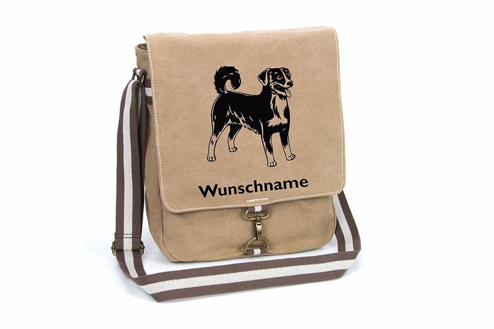 Appenzeller Sennenhund - Canvas Schultertasche Messenger mit Namen -