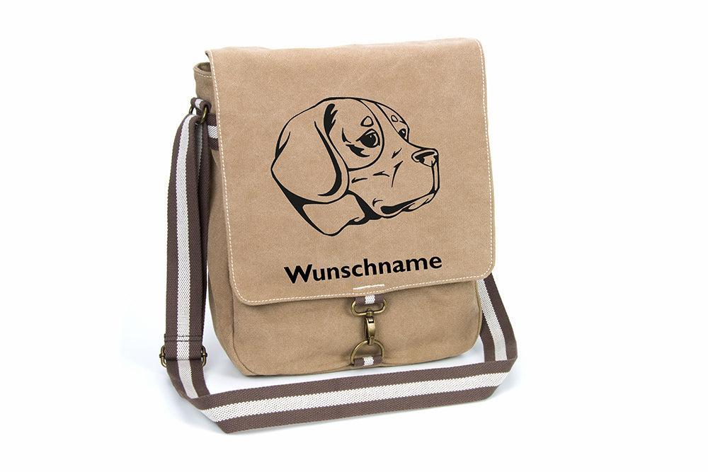 Beagle 1 - Canvas Schultertasche Messenger mit Namen