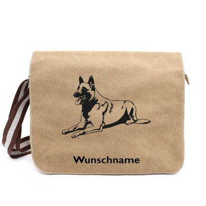 Belgischer Schäferhund Malinois 2 - Canvas Schultertasche Messenger mit Namen - Tierisch tolle Geschenke