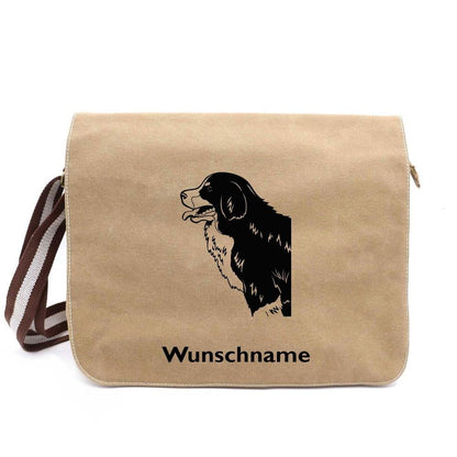 Berner Sennenhund 2 - Canvas Schultertasche Messenger mit Namen - Tierisch tolle Geschenke