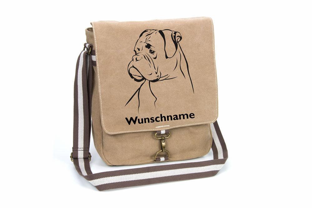 Boxer - Canvas Schultertasche Messenger mit Namen -