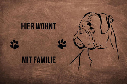 Ob als Geschenk oder für den eigenen Eingangsbereich – diese personalisierte Fußmatte bringt die mutige, verspielte und treue Natur des Boxer stilvoll zur Geltung.