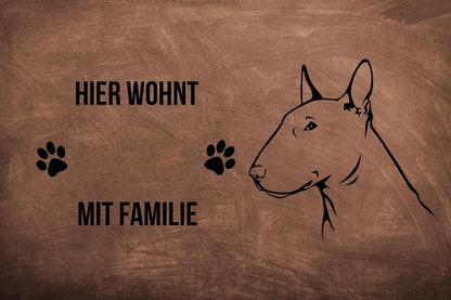 Ob als Geschenk oder für den eigenen Eingangsbereich – diese personalisierte Fußmatte bringt die mutige, treue und einzigartige Natur des Bullterrier stilvoll zur Geltung.