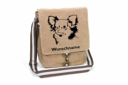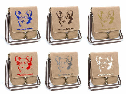 Chihuahua Langhaar - Canvas Schultertasche Messenger mit Namen Chihuahua Langhaar - Canvas Schultertasche Messenger mit Namen