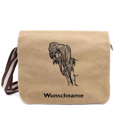 Chinesischer Schopfhund - Canvas Schultertasche Messenger mit Namen - Tierisch tolle Geschenke