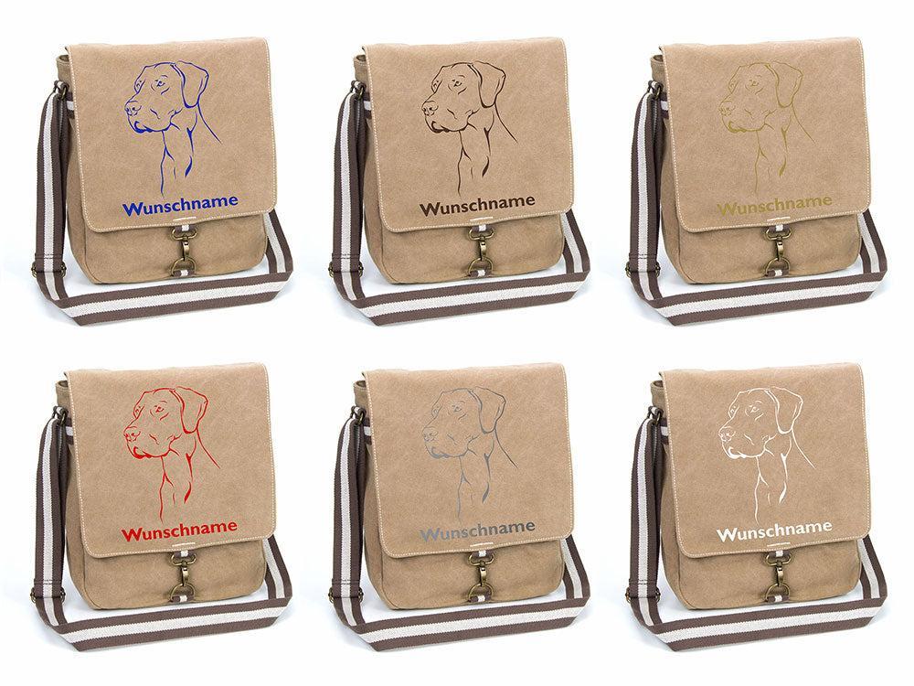 Deutsche Dogge - Canvas Schultertasche Messenger mit Namen -