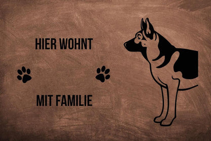 Ob als Geschenk oder für den eigenen Eingangsbereich – diese personalisierte Fußmatte bringt die intelligente, loyale und beschützende Natur des Deutschen Schäferhundes stilvoll zur Geltung.