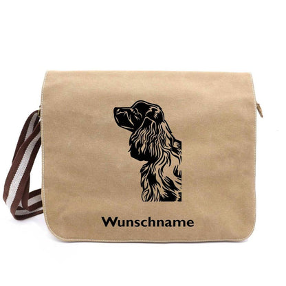Englischer Cocker Spaniel - Canvas Schultertasche Messenger mit Namen - Tierisch tolle Geschenke