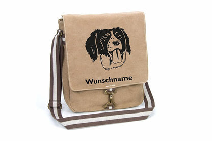 Epagneul Breton Brittany Spaniel - Canvas Schultertasche Messenger mit Namen -