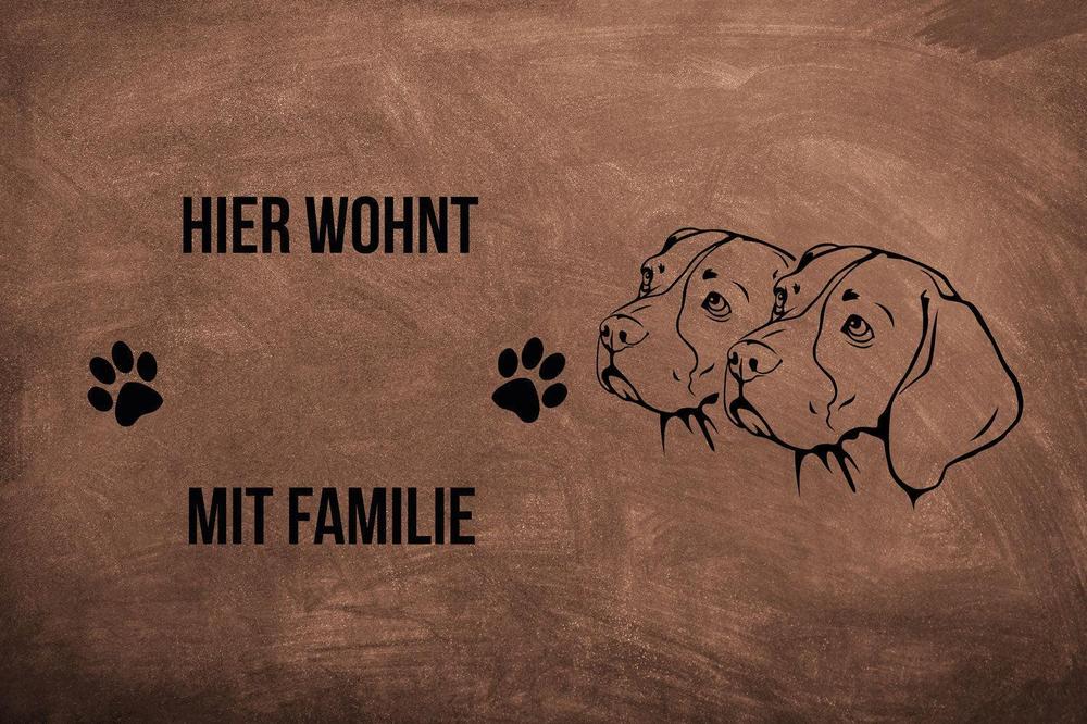 Ob als Geschenk oder für den eigenen Eingangsbereich – diese personalisierte Fußmatte bringt die verspielte, neugierige und lebhafte Natur deines Beagle-Duos stilvoll zur Geltung.