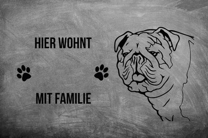 Ob als Geschenk oder für den eigenen Eingangsbereich – diese personalisierte Fußmatte bringt die freundliche, entspannte und liebevolle Natur der Bulldogge stilvoll zur Geltung.