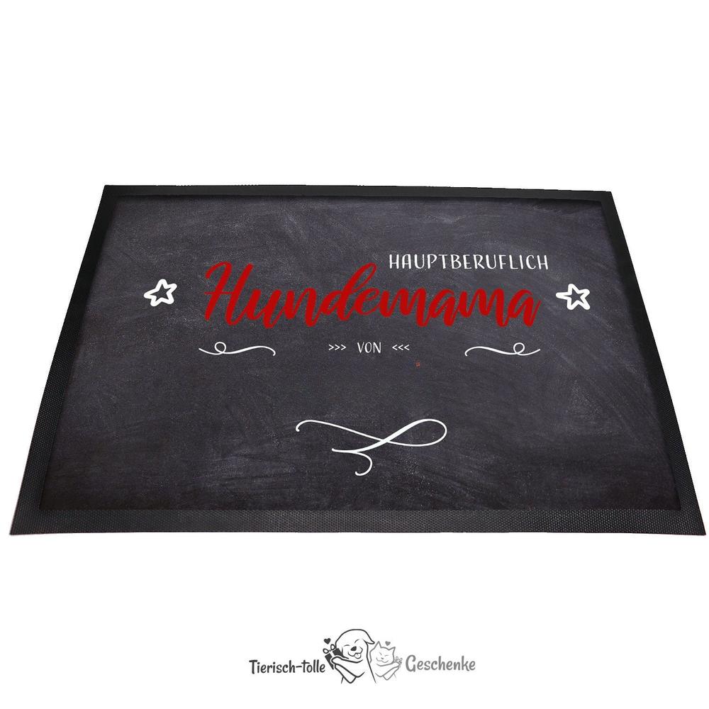 Dein wichtigster Jobtitel? Ganz klar: Hundemama. Und das mit voller Leidenschaft, 24 Stunden am Tag, 7 Tage die Woche! Mit unserer personalisierten Fußmatte im stilvollen Kreidetafel-Design kannst du das jetzt jedem zeigen, der vor deiner Tür steht.