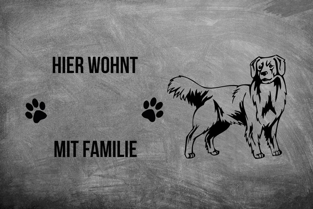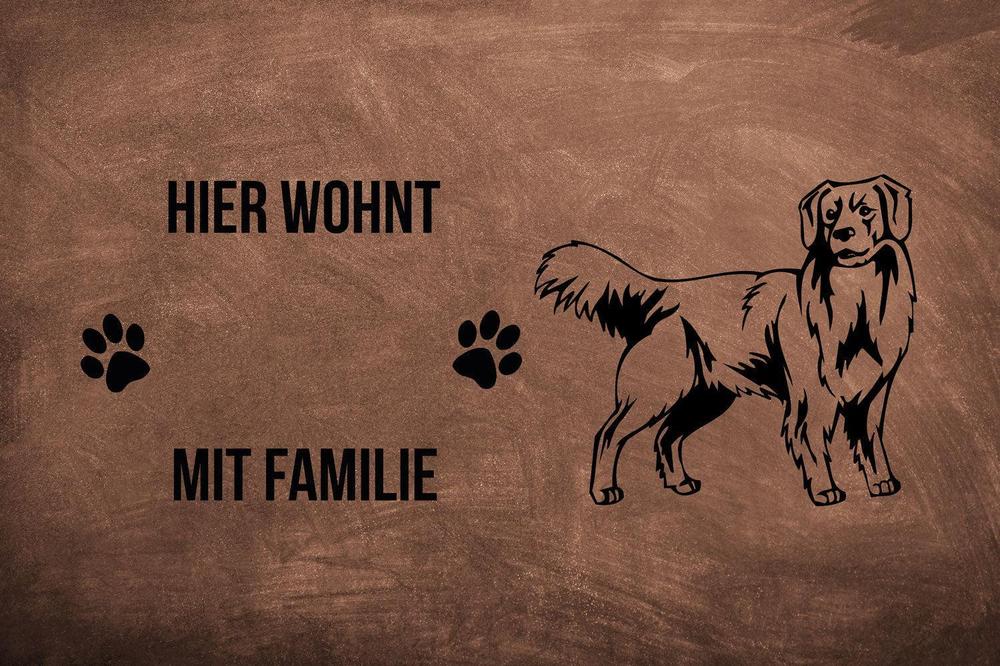 Ob als Geschenk oder für den eigenen Eingangsbereich – diese personalisierte Fußmatte bringt die verspielte Ausstrahlung und die intelligente Natur des Nova Scotia Duck Tolling Retriever stilvoll zur Geltung.