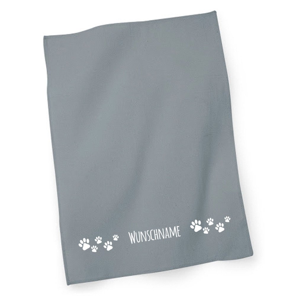Geschirrtuch - Trockentuch Pfötchen 3 - mit Wunschname-Tierisch-tolle-Geschenke-Tierisch-tolle-Geschenke