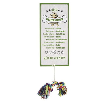 Wie wird das Wetter für die nächste Gassirunde? Ein Blick auf den Seilknochen genügt! Unsere charmante "Gassi Wetterstation" von Gilde ist die wohl ehrlichste und witzigste Wettervorhersage für alle Hundefreunde und ein absoluter Hingucker für Ihren Außenbereich.