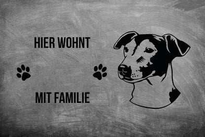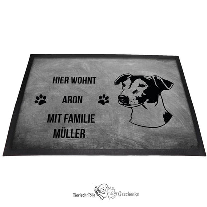 Ob als Geschenk oder für den eigenen Eingangsbereich – diese personalisierte Fußmatte bringt die unbändige Energie und den mutigen Charakter des Jack Russel Terrier stilvoll zur Geltung.