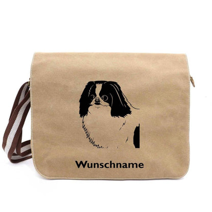 Japan Chin - Canvas Schultertasche Messenger mit Namen - Tierisch tolle Geschenke