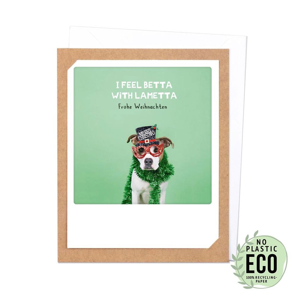 Mache deinen Liebsten eine Freude mit unserer süßen Klappkarte: i feel betta with lametta. Eine persönliche, lustige Geste zum Fest der Liebe und eine schöne Ergänzung zum Geschenk.