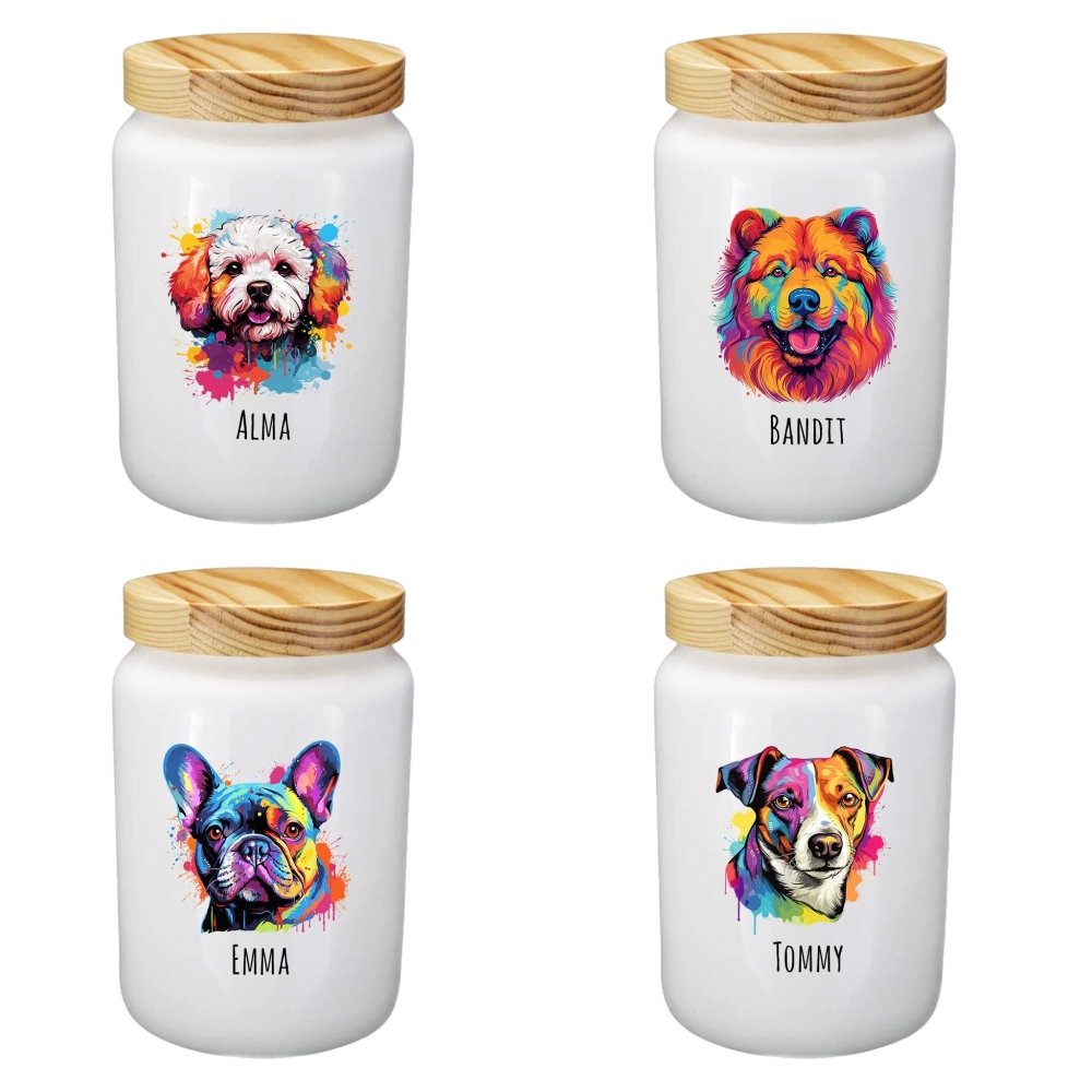 Diese stilvolle und praktische Leckerlidose ist perfekt für die Aufbewahrung von Hundesnacks oder Katzenleckerlis. Mit einem individuellen Hunderasse und süßem Design wird sie zum echten Hingucker!