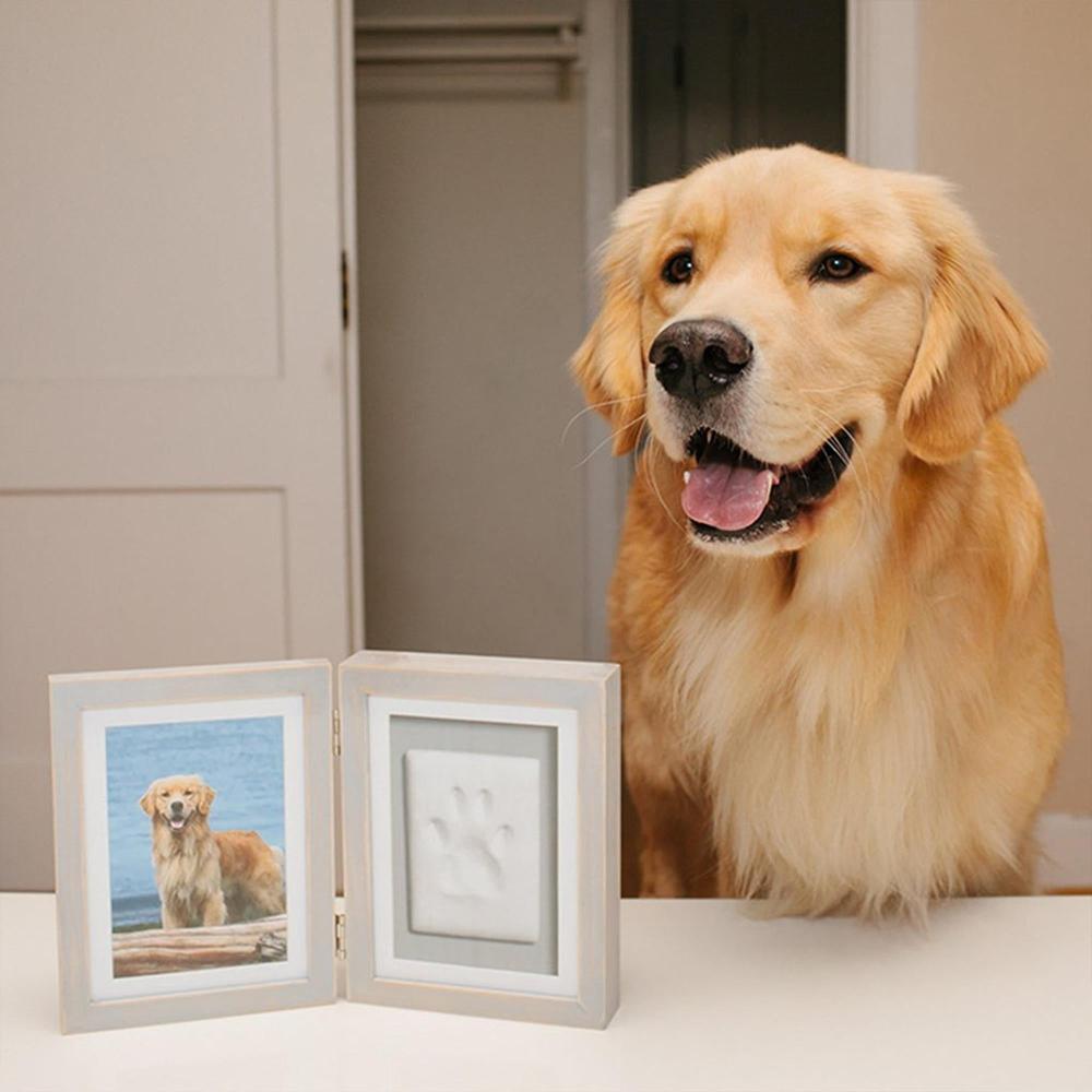 Schaffe eine bleibende Erinnerung an deinen treuen Begleiter – mit diesem liebevoll gestalteten Bilderrahmen mit Pfotenabdruck-Set von Pearhead®.