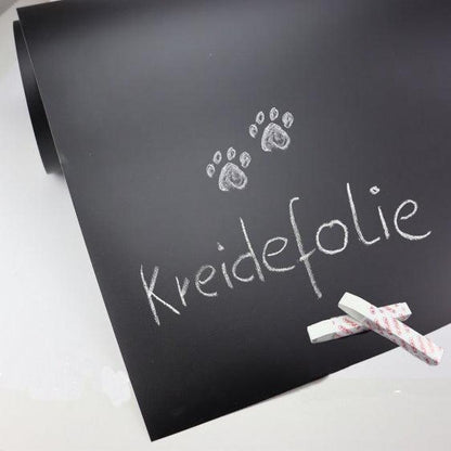 1 x Kreidetafelfolie (gerollt), 1 Stück Schulkreide, 1 x Aufkleberanleitung
