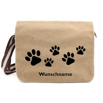 Pfötchen 1 - Canvas Schultertasche Messenger mit Namen - Tierisch tolle Geschenke