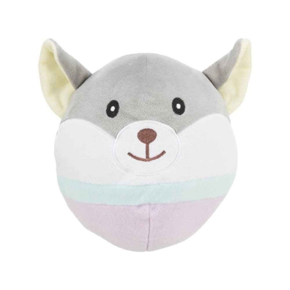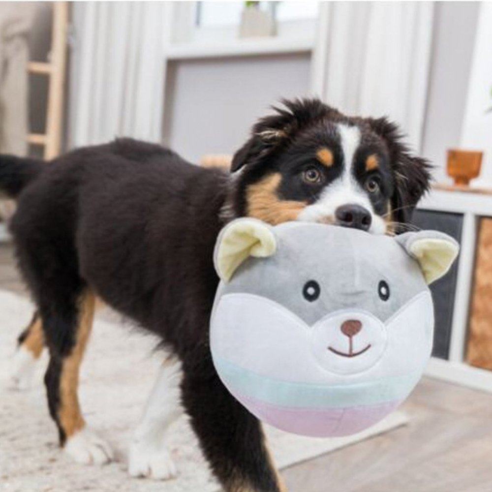 Kuscheltiere sind nicht nur geliebte Begleiter von Kindern, sondern werden auch von Hunden, besonders von Welpen, sehr gut angenommen. Die kompakte runde Form eignet sich hervorragend zum Apportieren im Wohnzimmer, oder einfach nur zum kuscheln im Körbchen. Um den Jagdtrieb des Hundes nicht zu fördern, verzichtet dieses Spielzeug komplett auf Quietscher.