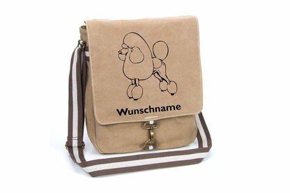 Pudel - Canvas Schultertasche Messenger mit Namen -
