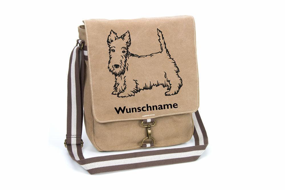 Scottish Terrier 5 - Canvas Schultertasche Messenger mit Namen -