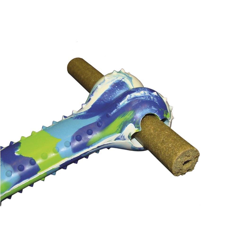 Dieses bunte Hunde-Spielzeug in Knochenform besteht aus Vollgummi. Mit den vielen Noppen sorgt der Vollgummi Knochen für eine intensive Pflege der Hundezähne und bietet ihm gleichzeitig ein besonderes Kauvergnügen. Vollgummi ist ein sehr robustes Material, das ein langes Spielvergnügen sichert. Zusätzlich ist der Knochen mit einer speziellen Öffnung versehen, die es ermöglicht, das Spielzeug mit trockenen Leckerchen zu befüllen und als Beschäftigungsspielzeug für deinen Hund zu nutzen.